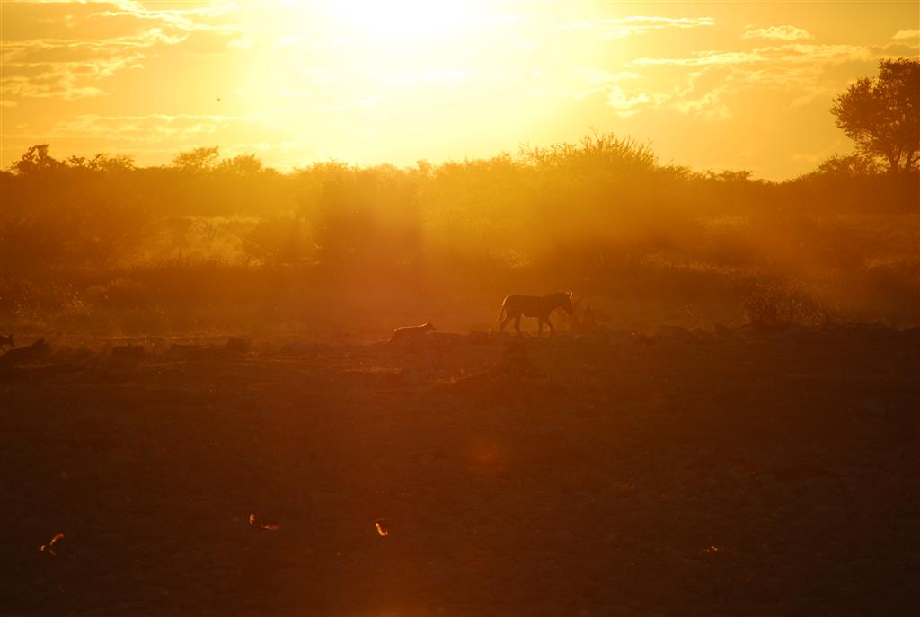er ganz gemütlich wieder ab und überlies das Wasserloch einer Zebraherde im